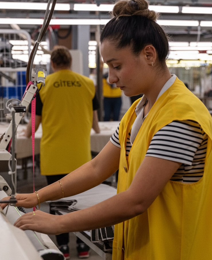 In Giteks’s smart factory, production flows on a digital backbone. From design to cutting, sewing, and final inspection, even return rates, every stage is monitored with data. Thanks to MES/ERP integration, real-time quality stations, and end-to-end traceability, our customers gain speed, flexibility, and a near-zero defect standard.